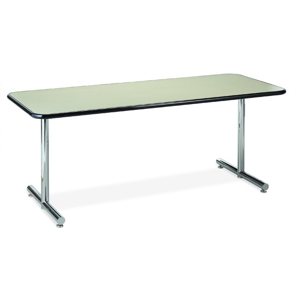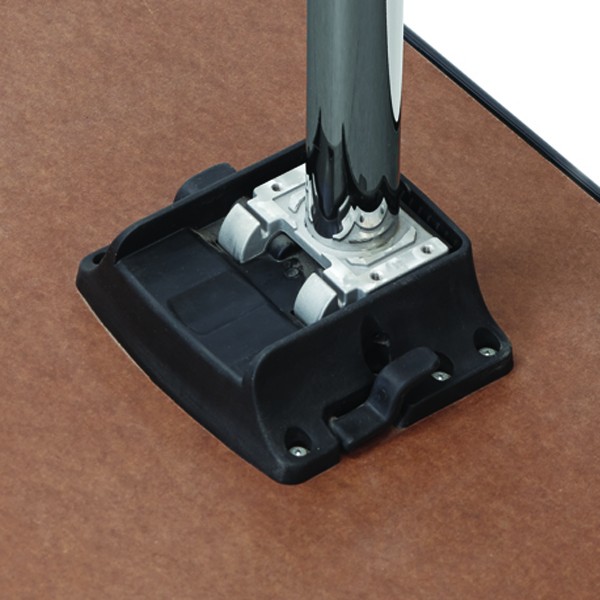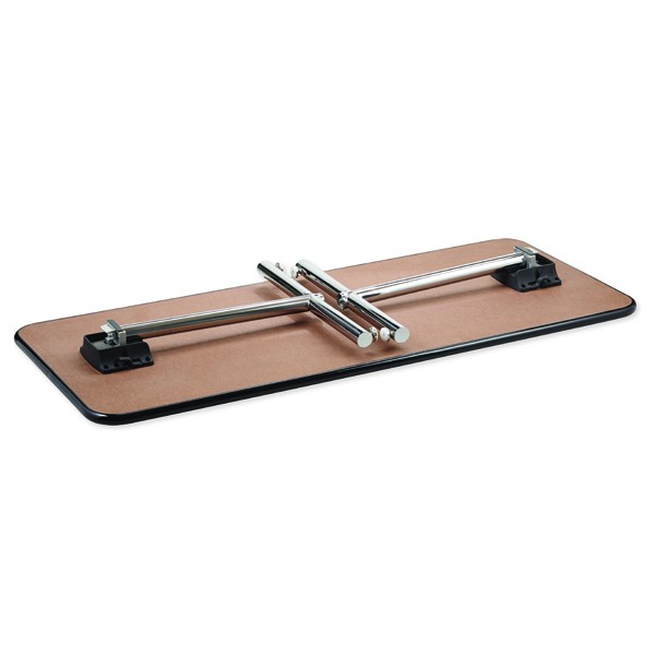 This sleek, pracitical, attractive mechanism is available as an option with our “MCHC” single T-bases. It locks solidly in place in both the up and down positions. It features a rubber coated stacking strip that permits the table to be stacked without damaging other tables.